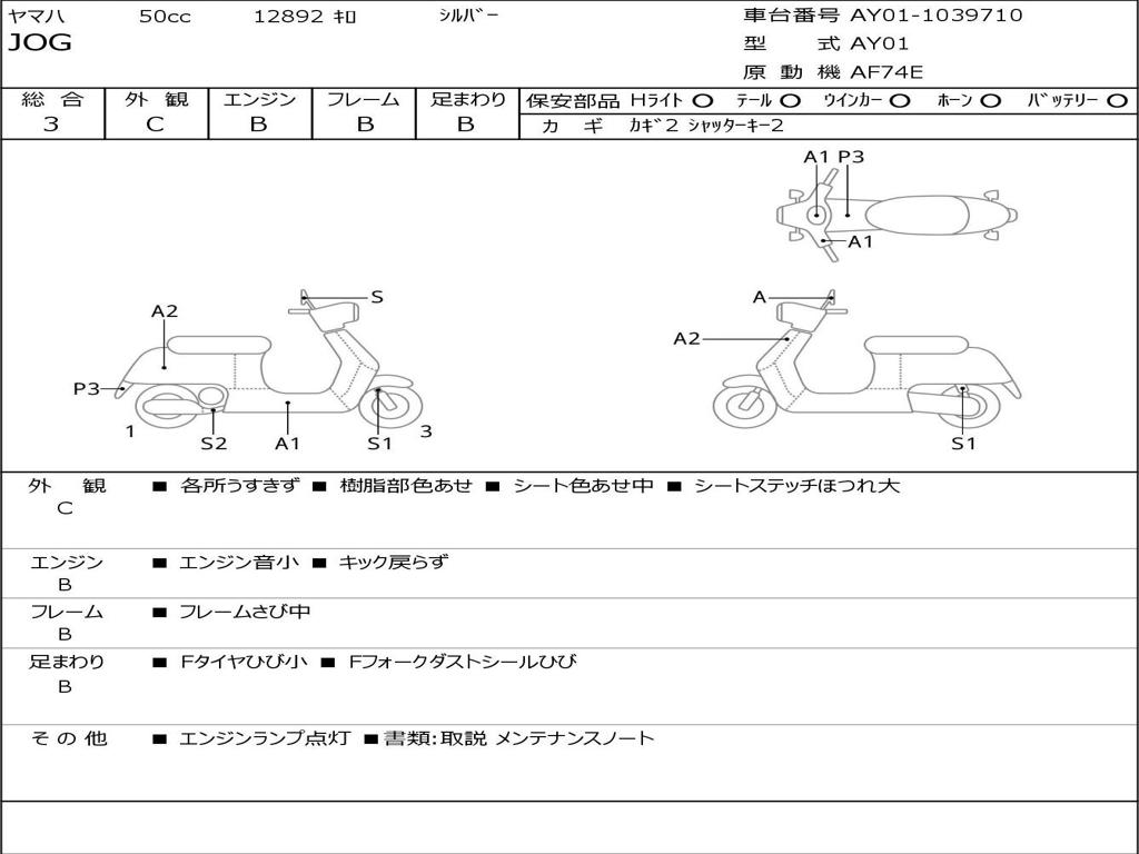 | Номер рамы / VIN | AY01-1039710 |