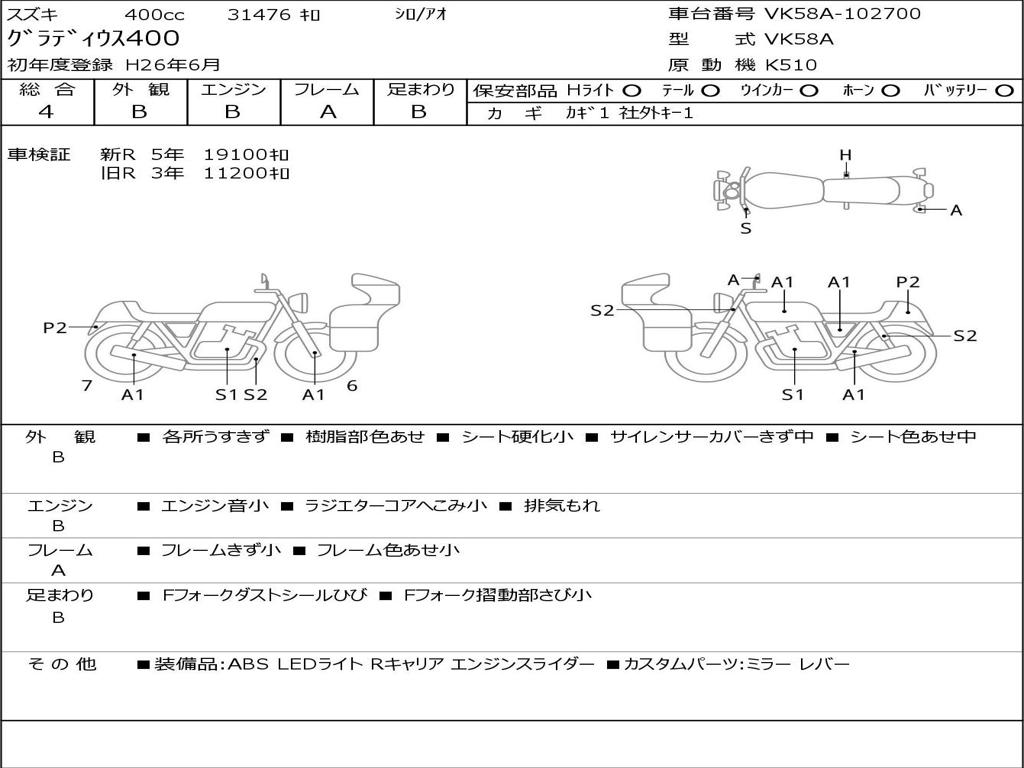 | Номер рамы / VIN | VK58A-102700 |