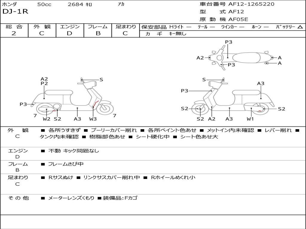 | Номер рамы / VIN | AF12-1265220 |