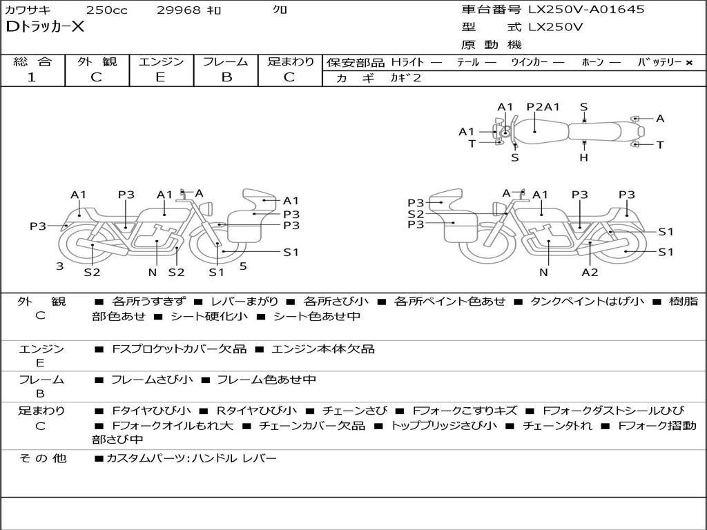 | Номер рамы / VIN | LX250V-A01645 |