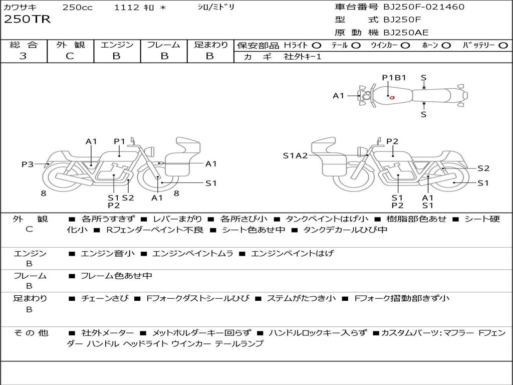 | Номер рамы / VIN | BJ250F-021460 |