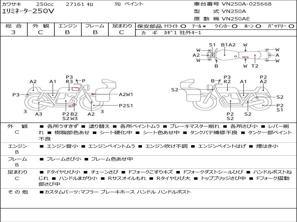 | Номер рамы / VIN | VN250A-025668 |
