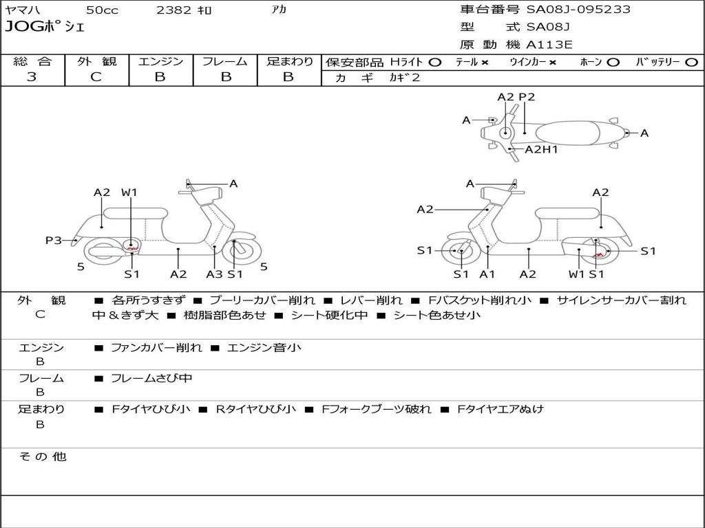 | Номер рамы / VIN | SA08J-095233 |