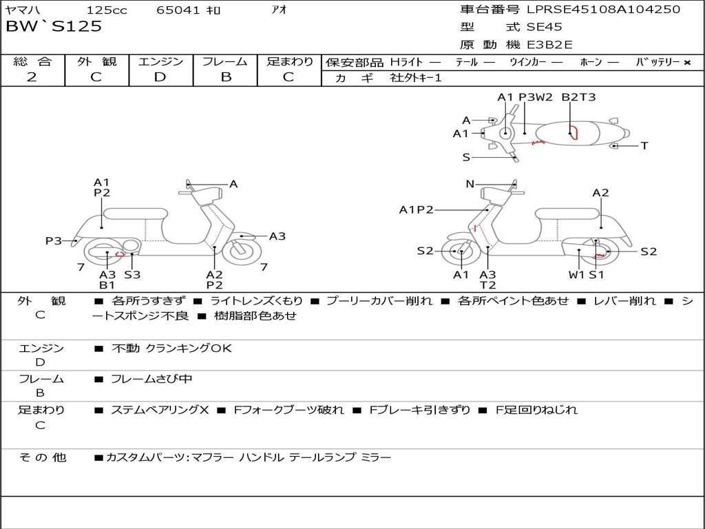 | Номер рамы / VIN | LPRSE45108A104250 |