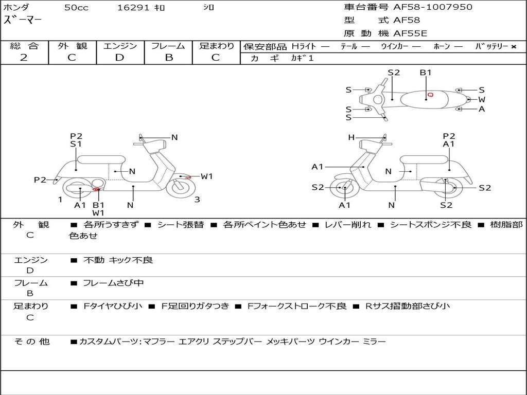 | Номер рамы / VIN | AF58-1007950 |
