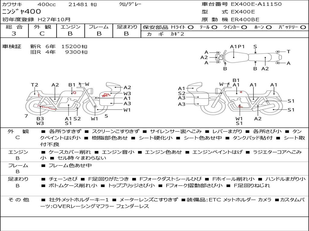 | Номер рамы / VIN | EX400E-A11150 |