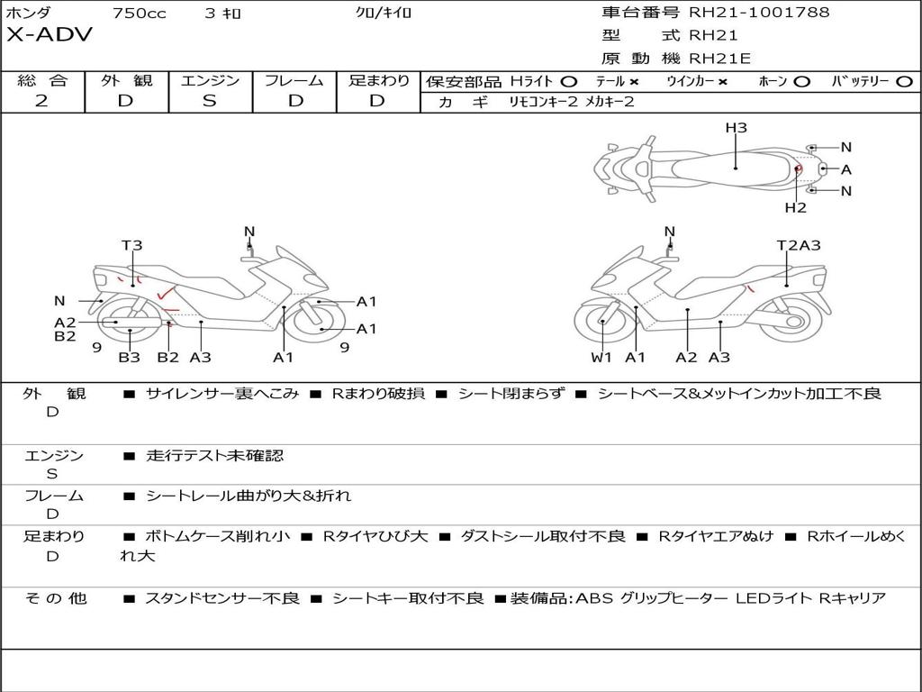 | Номер рамы / VIN | RH21-1001788 |
