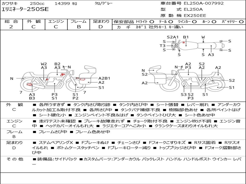 | Номер рамы / VIN | EL250A-007992 |
