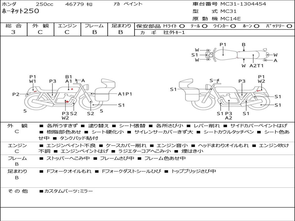 | Номер рамы / VIN | MC31-1304454 |
