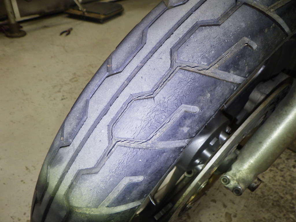 | шина | трещины, требует замены |