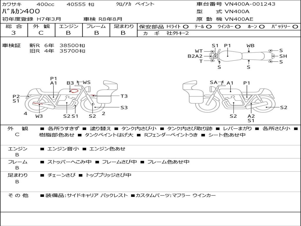 | Номер рамы / VIN | VN400A-001243 |