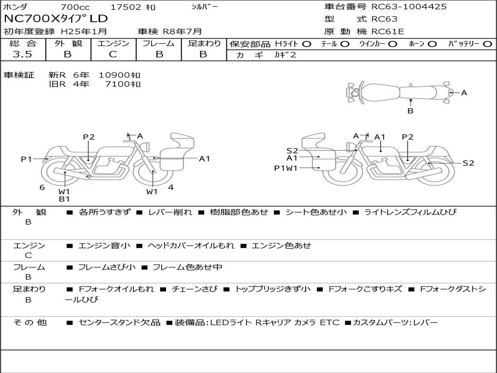 | Номер рамы / VIN | RC63-1004425 |