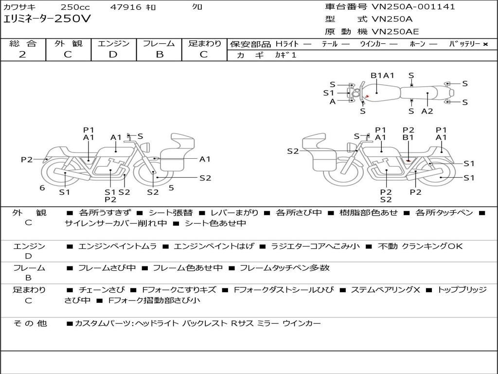 | Номер рамы / VIN | VN250A-001141 |