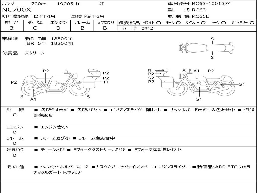 | Номер рамы / VIN | RC63-1001374 |