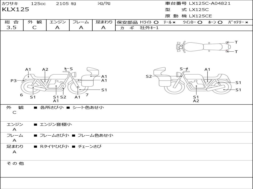 | Номер рамы / VIN | LX125C-A04821 |
