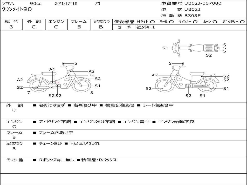 | Номер рамы / VIN | UB02J-007080 |