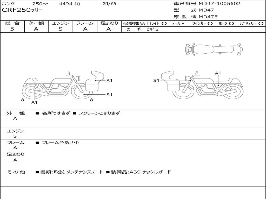 | Номер рамы / VIN | MD47-1005602 |