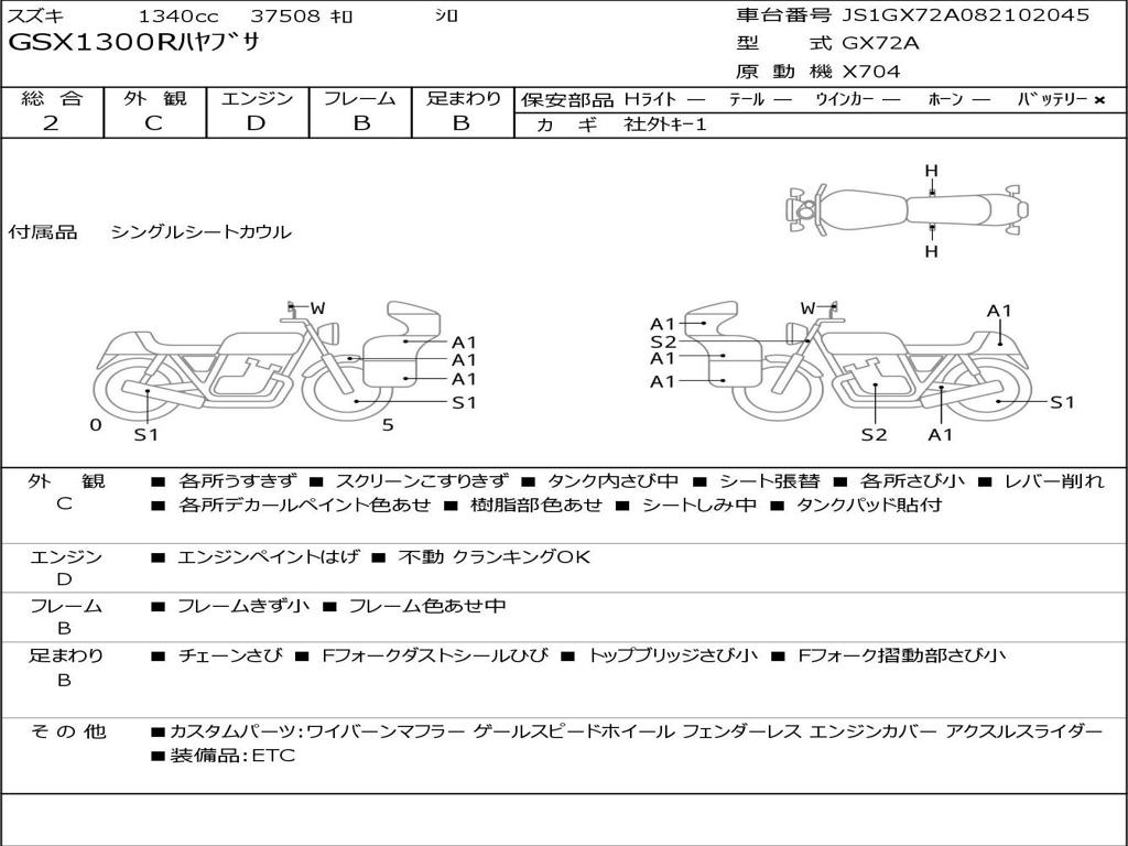 | Номер рамы / VIN | JS1GX72A082102045 |
