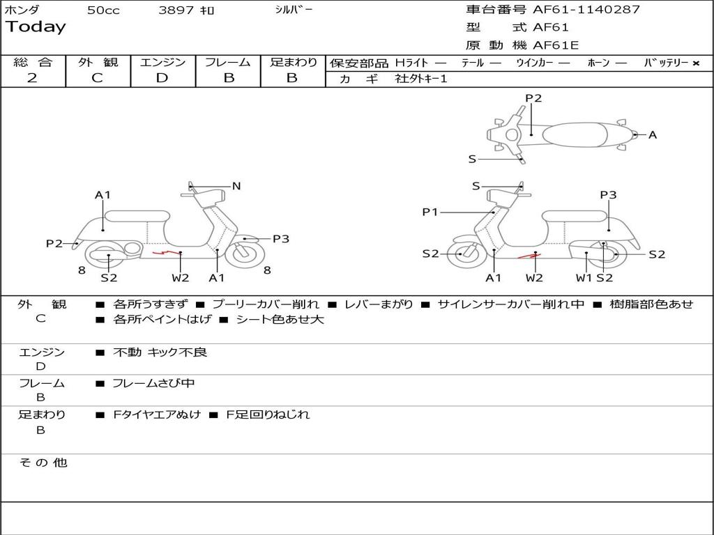 | Номер рамы / VIN | AF61-1140287 |