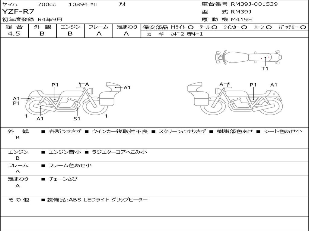 | Номер рамы / VIN | RM39J-001539 |