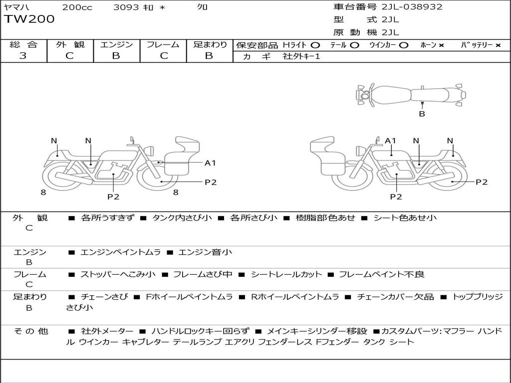 | Номер рамы / VIN | 2JL-038932 |