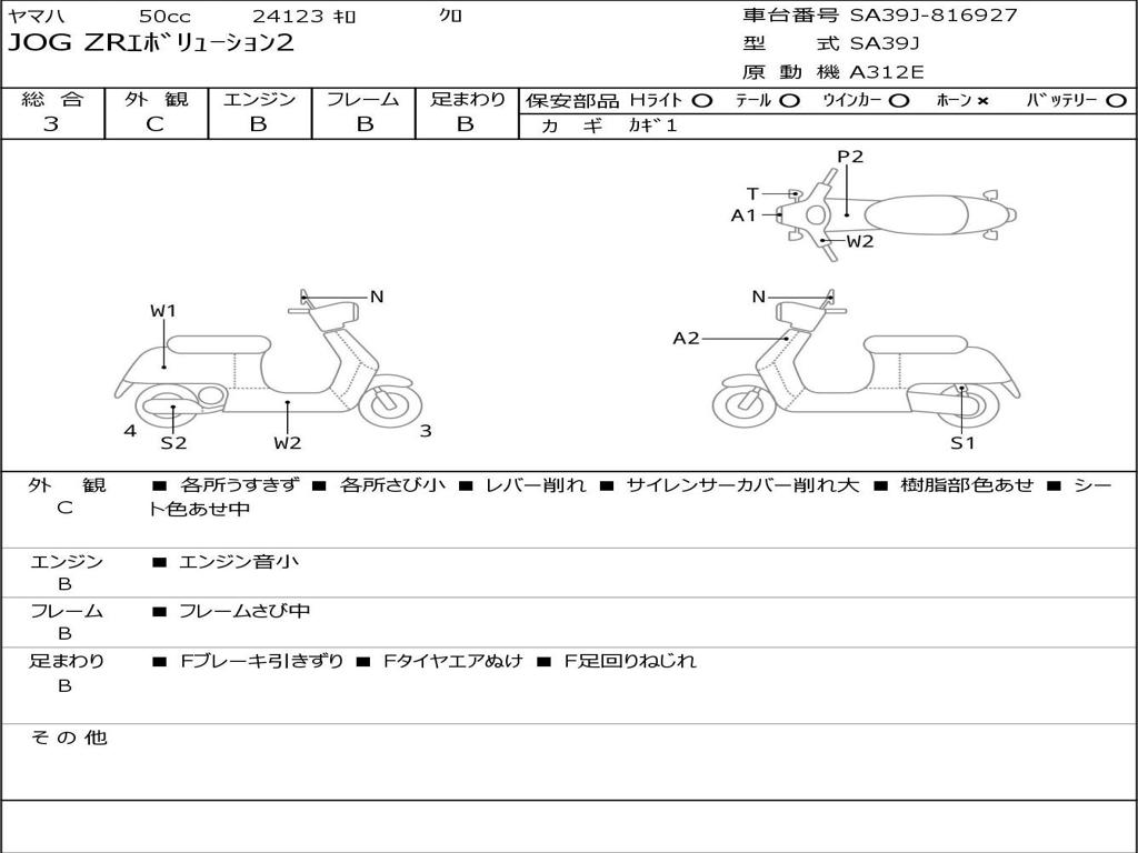 | Номер рамы / VIN | SA39J-816927 |