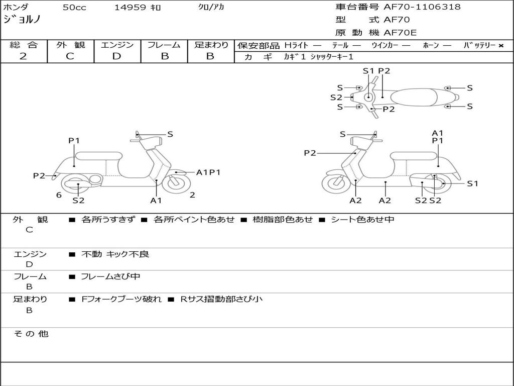 | Номер рамы / VIN | AF70-1106318 |