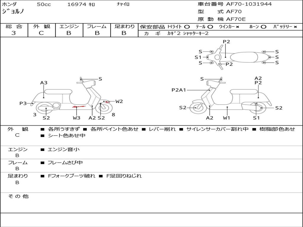 | Номер рамы / VIN | AF70-1031944 |