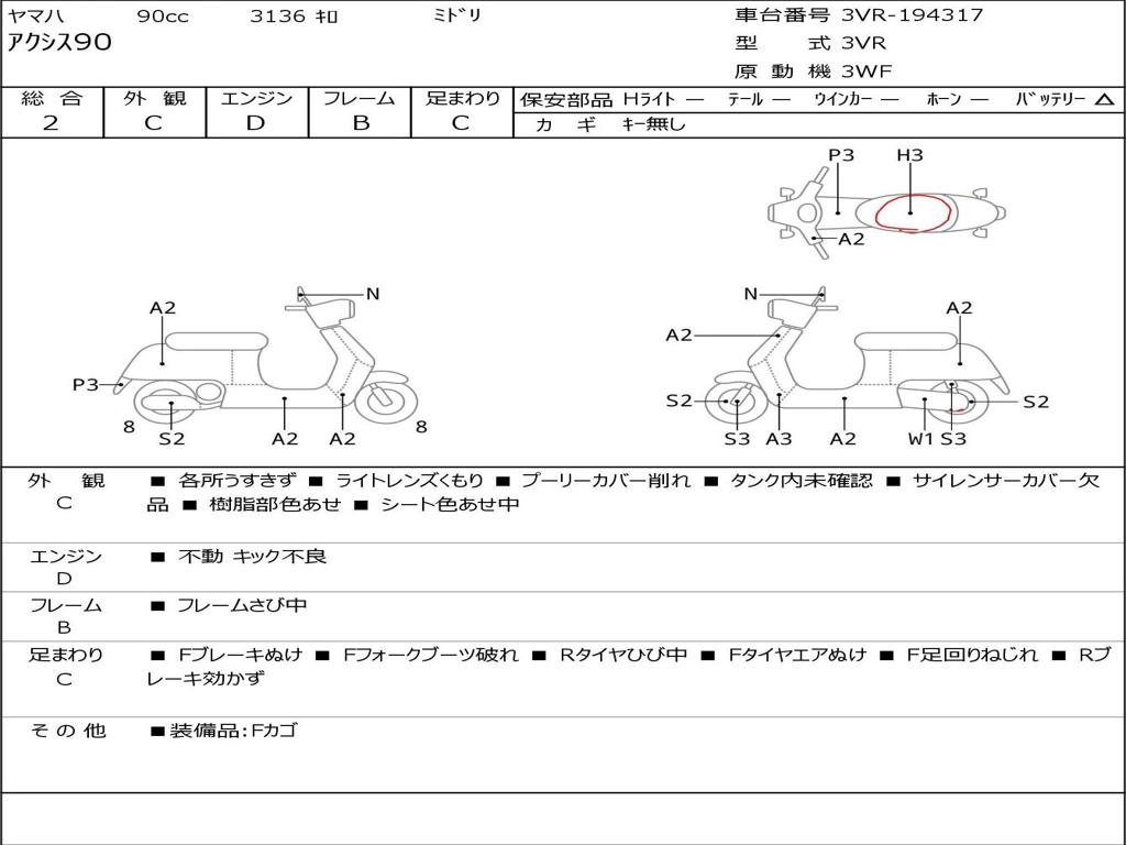 | Номер рамы / VIN | 3VR-194317 |