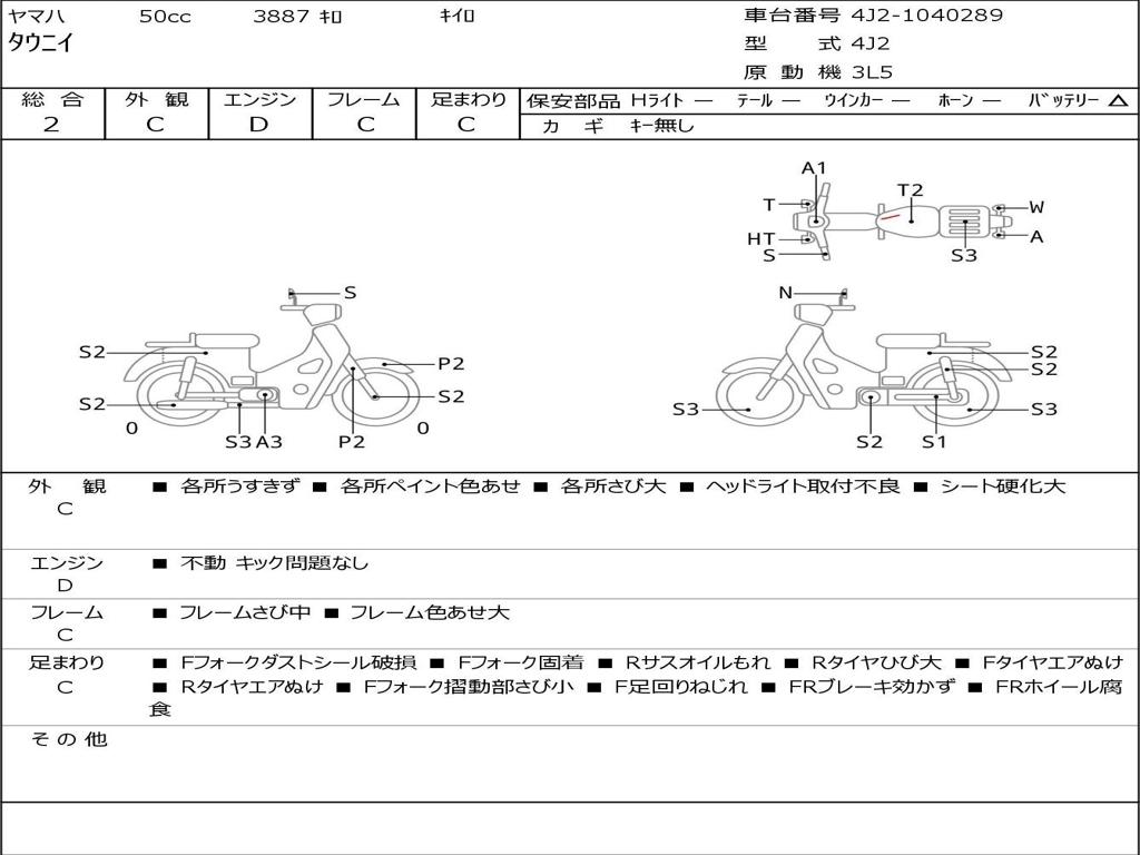| Номер рамы / VIN | 4J2-1040289 |