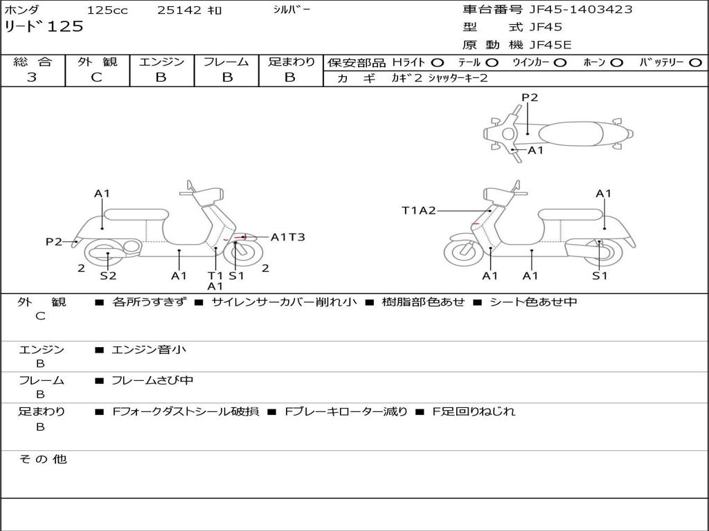 | Номер рамы / VIN | JF45-1403423 |