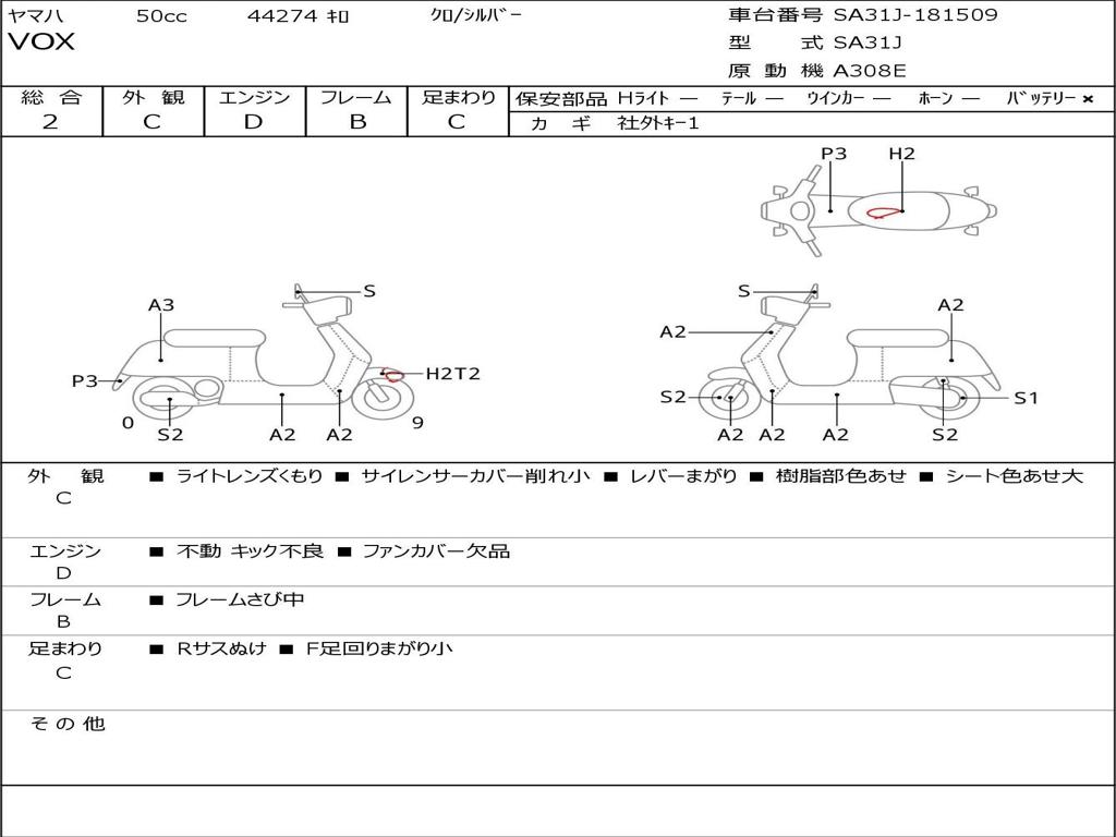 | Номер рамы / VIN | SA31J-181509 |