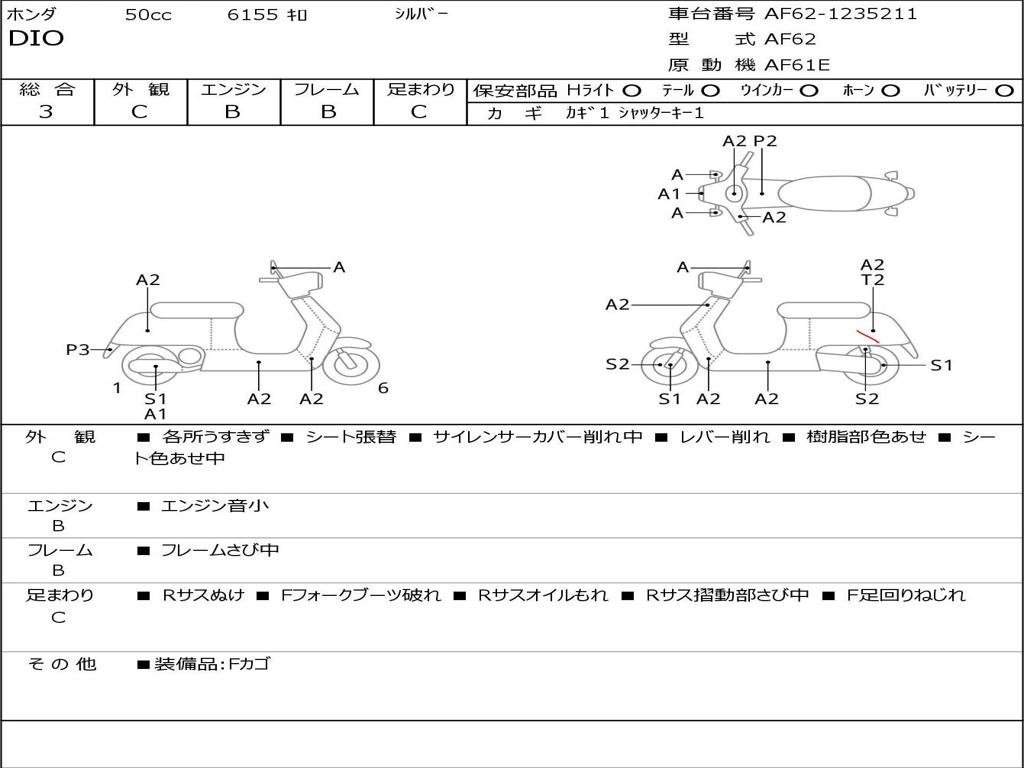 | Номер рамы / VIN | AF62-1235211 |