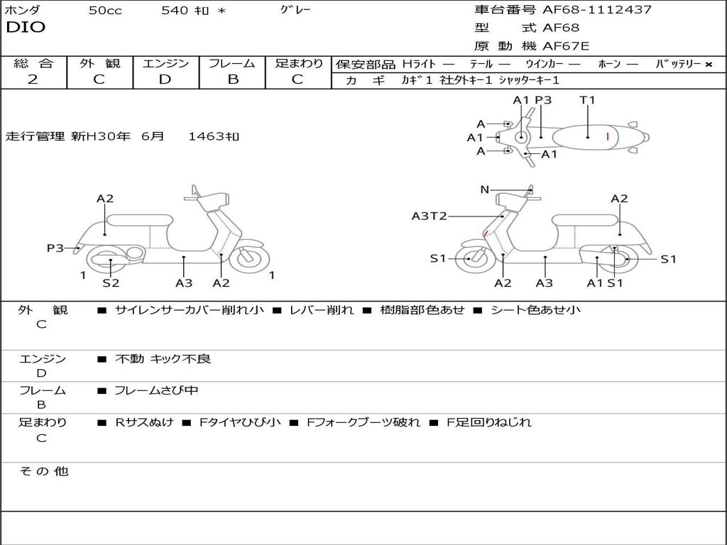 | Номер рамы / VIN | AF68-1112437 |