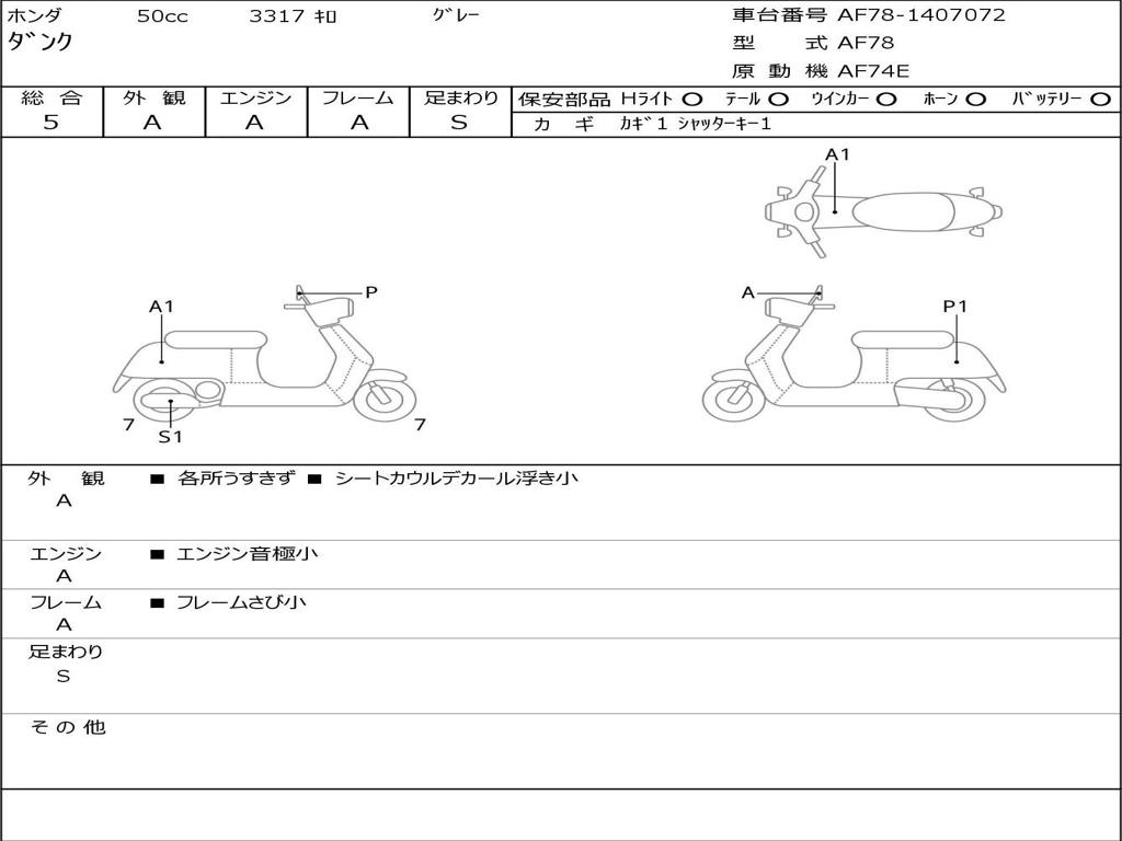 | Номер рамы / VIN | AF78-1407072 |