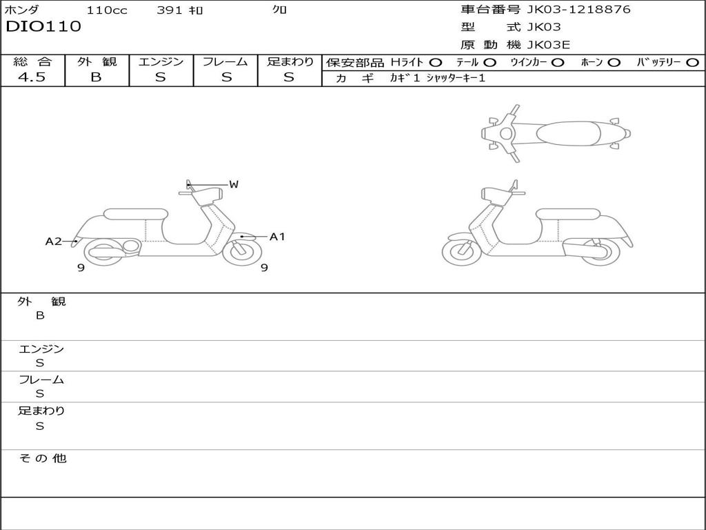 | Номер рамы / VIN | JK03-1218876 |