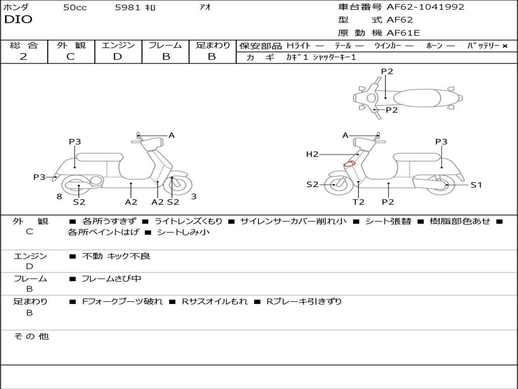 | Номер рамы / VIN | AF62-1041992 |