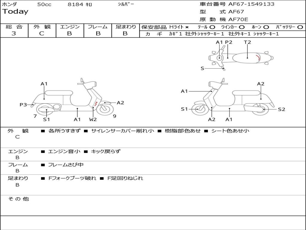 | Номер рамы / VIN | AF67-1549133 |