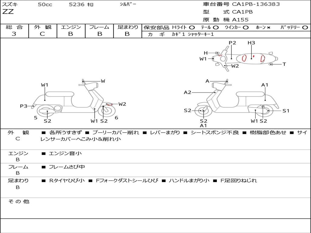| Номер рамы / VIN | CA1PB-136383 |