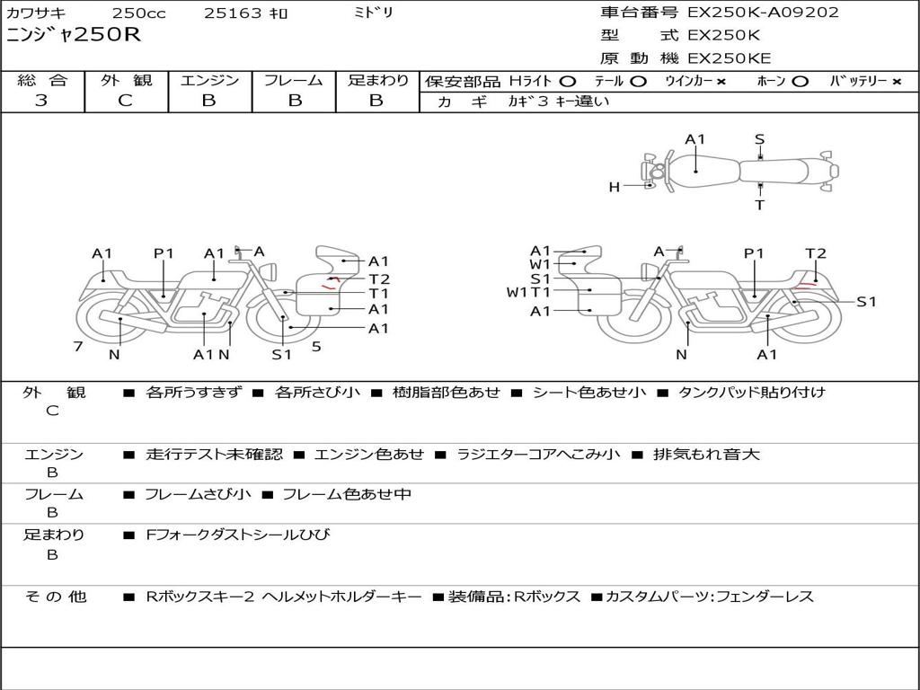| Номер рамы / VIN | EX250K-A09202 |