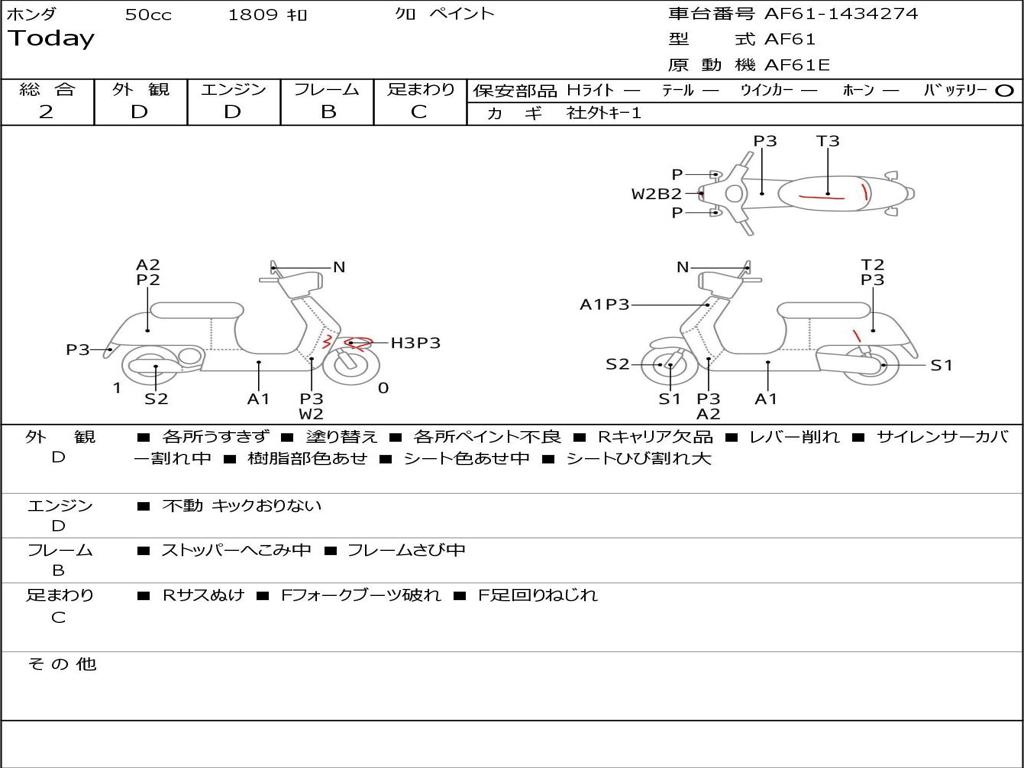 | Номер рамы / VIN | AF61-1434274 |