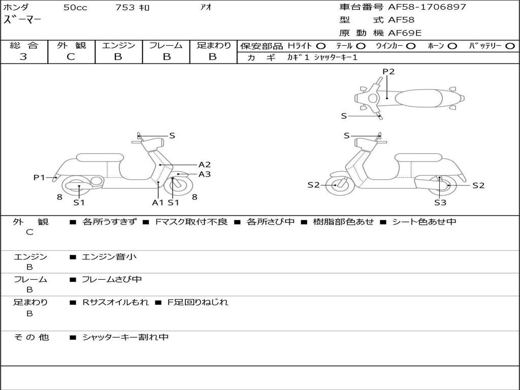 | Номер рамы / VIN | AF58-1706897 |