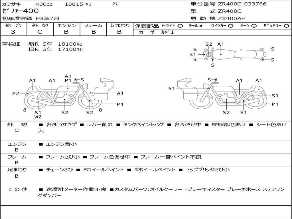 | Номер рамы / VIN | ZR400C-033766 |