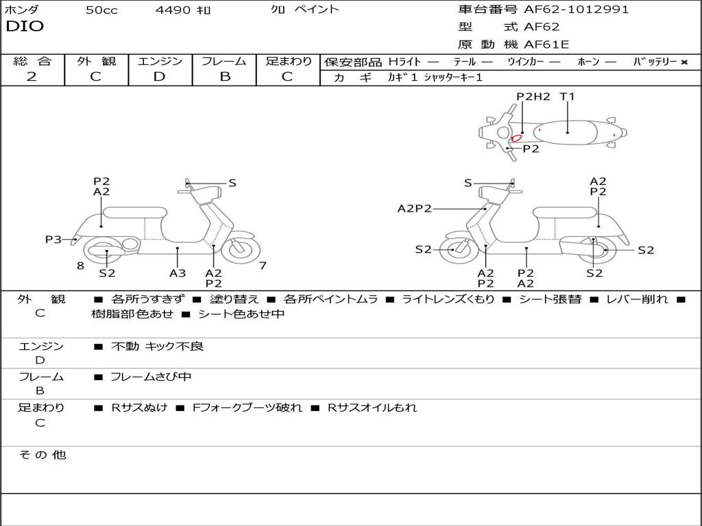 | Номер рамы / VIN | AF62-1012991 |