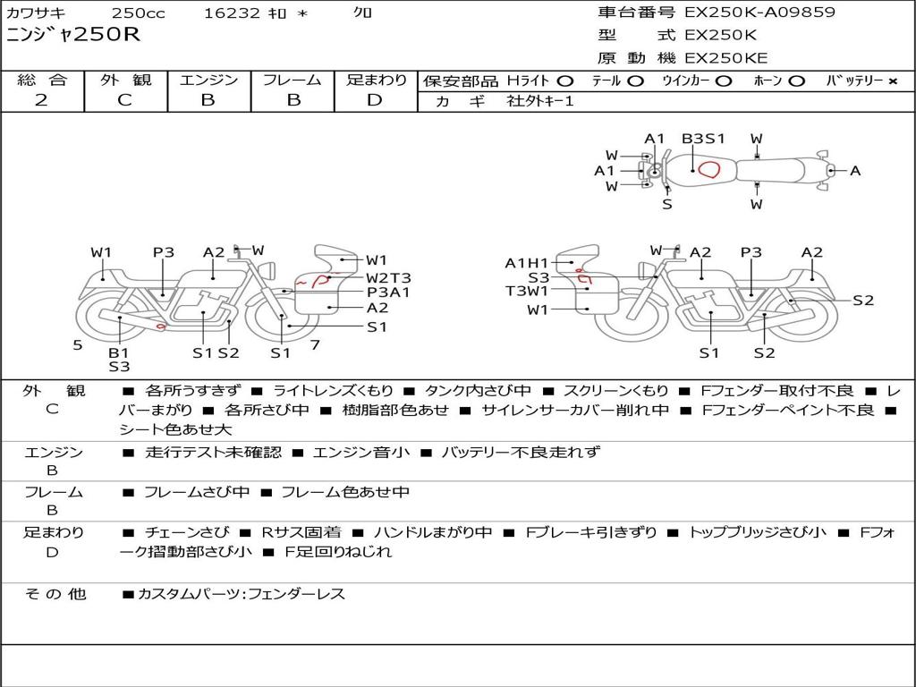 | Номер рамы / VIN | EX250K-A09859 |