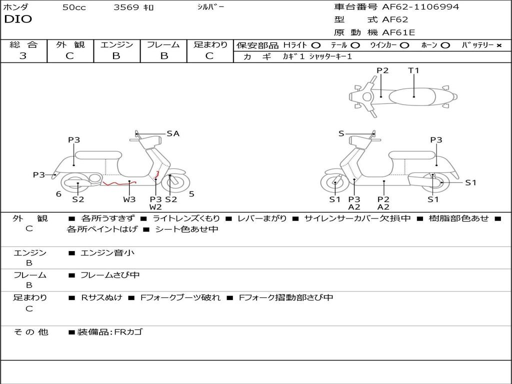 | Номер рамы / VIN | AF62-1106994 |