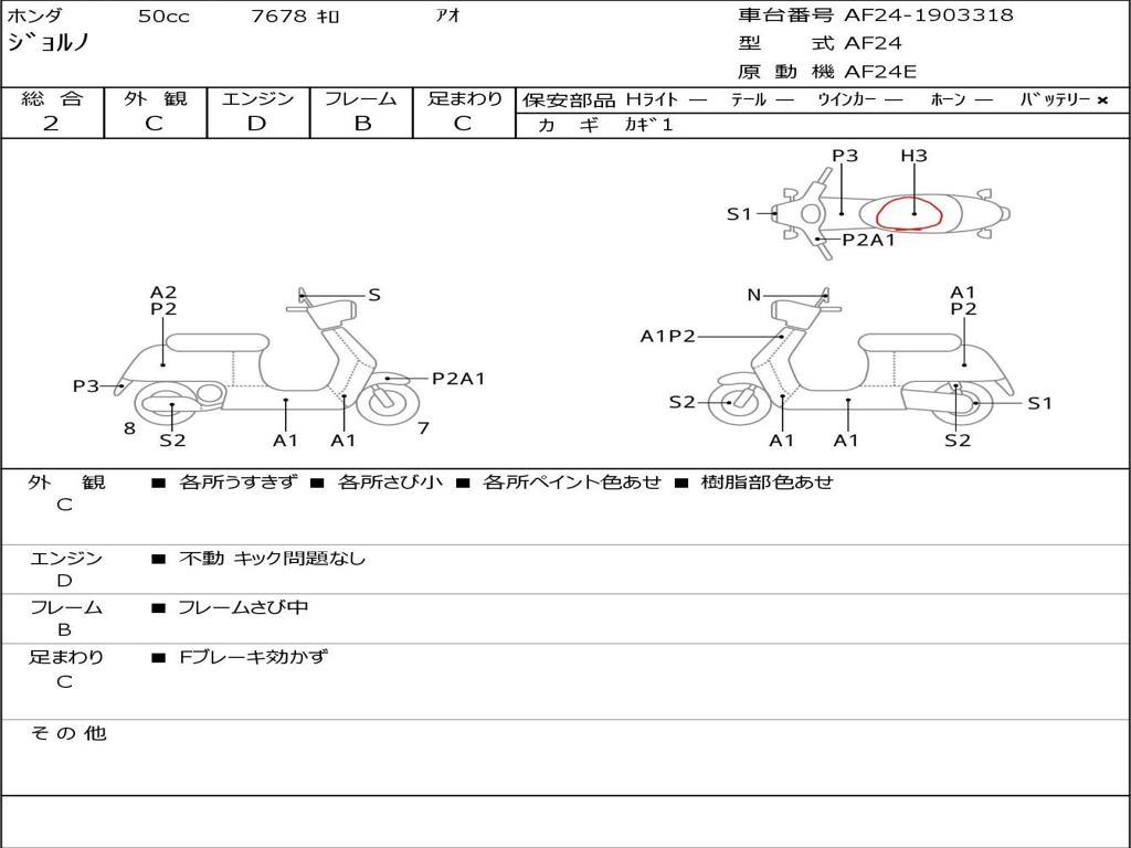 | Номер рамы / VIN | AF24-1903318 |