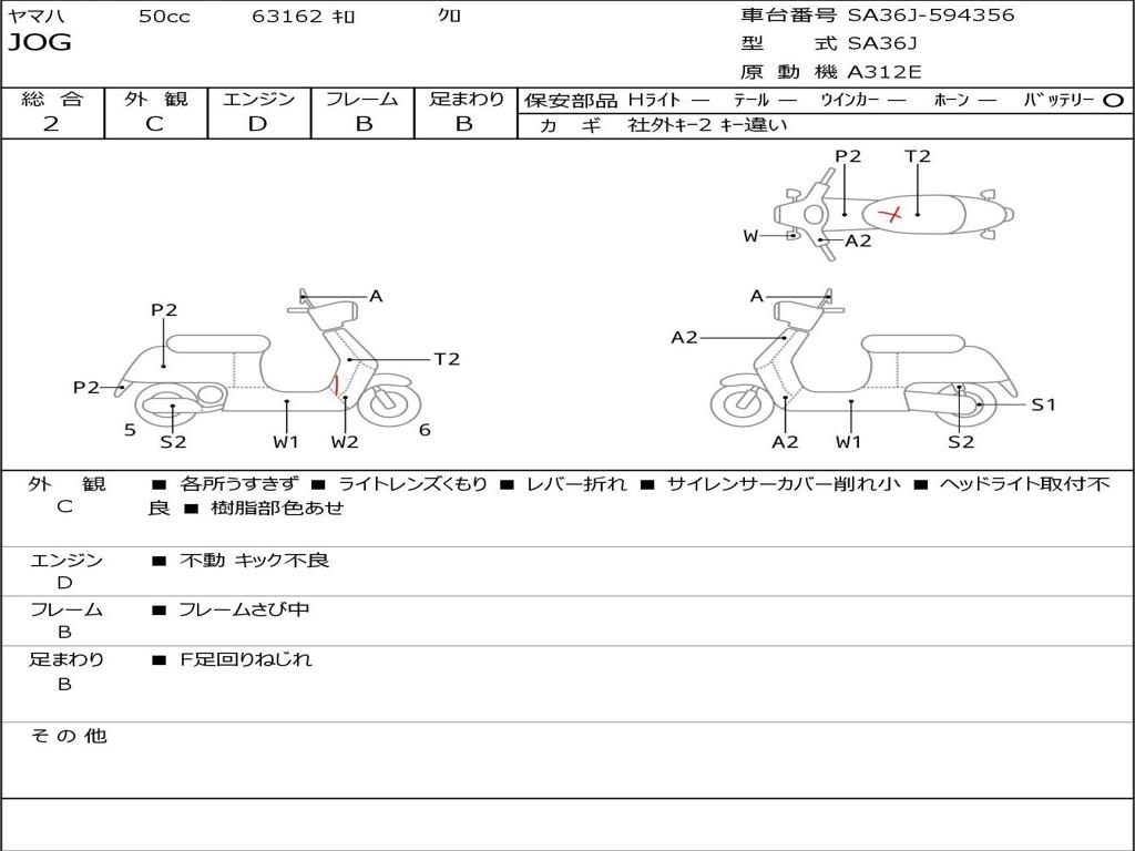 | Номер рамы / VIN | SA36J-594356 |