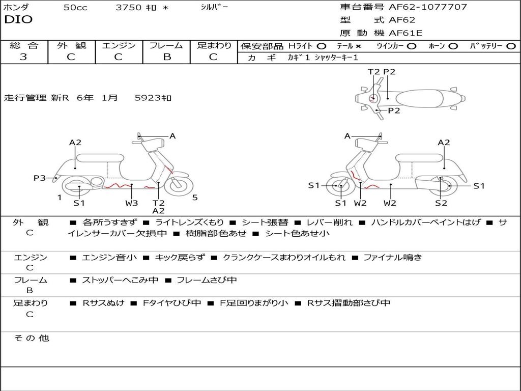 | Номер рамы / VIN | AF62-1077707 |