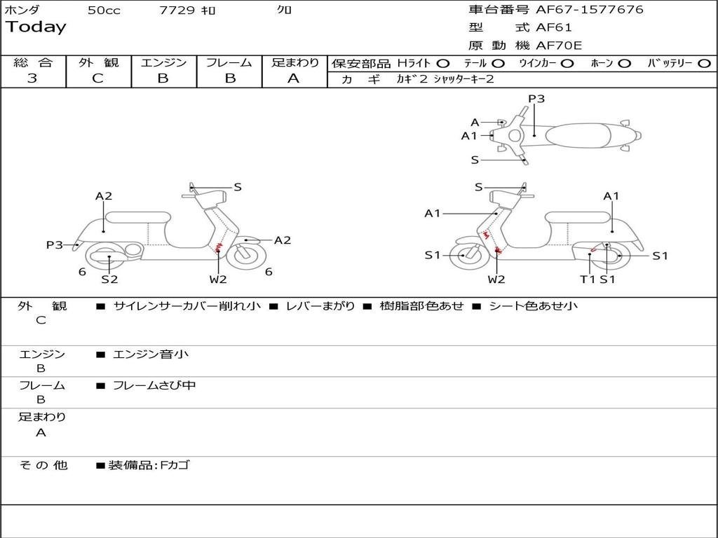 | Номер рамы / VIN | AF67-1577676 |